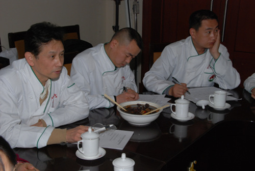 12月1日上午,辽宁赛区裁判员培训交流会在沈阳市金城宾馆召开。出席会议的有,中国烹饪协会副会长、辽宁赛区裁判长卢永良,中国烹饪协会秘书长冯恩援以及来自全国各地的27名裁判员。会上卢副会长就有关大赛的裁判工作做了细致的部署,同时对裁判在实际操作当中如何正确评判、对如何检录、如何做到大赛公平、公正做了很明确的说明。冯秘书长说“辽宁赛区是目前各赛区中比赛项目最多的,包含有热菜、面点、冷拼、雕刻、清真、服务,对于组织比赛以及评判等工作都增加了难度,这就需要我们大家一起努力,坚持按竞赛规则办事,认真尽责的将大赛工作做好。