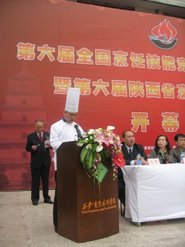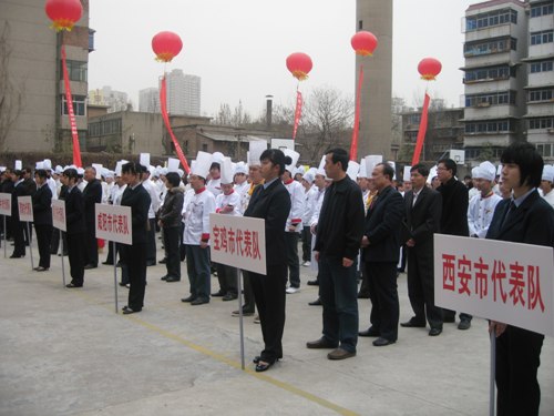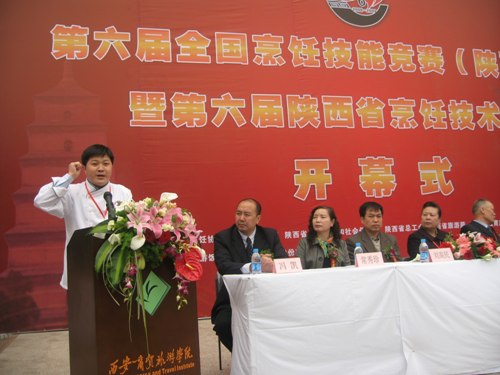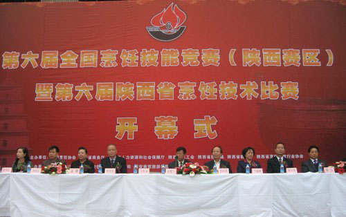 3月21日上午,第六届全国烹饪技能竞赛陕西赛区比赛暨第六届陕西省烹饪技术比赛开幕式在西安商贸旅游学院隆重举行。中国烹饪协会副会长、本次大赛裁判长孙应武、副秘书长孟璐、陕西省商务厅副厅长赵银玉、陕西省贸易管理办公室主任王社安、陕西省烹饪餐饮行业协会会长李有堂等相关单位的领导以及来自陕西10个地市参赛团体的代表出席了开幕式。
