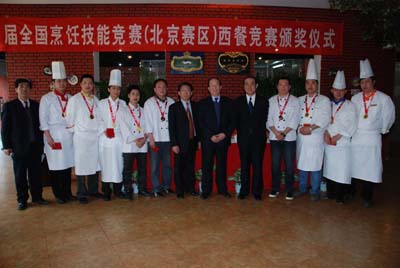 3月31日,北京赛区西餐赛颁奖仪式本着隆重、热烈、节俭的方针在长峰宾馆举行,中国烹饪协会副会长、第六届全国烹饪技能竞赛副总裁判长孙应武,中国烹饪协会副秘书长、中国烹饪协会西餐专业委员会秘书长边疆,北京西餐业协会副会长贺广银、韩少利,北京179中学校长、中国烹饪大师李刚等出席颁奖仪式并为获奖选手和团体颁奖。边疆副秘书长受第六届全国烹饪技能竞赛组委会委托对北京赛区西餐赛作了点评。仪式结束后,中国烹饪协会和北京西餐业协会领导与获奖选手亲切合影留念。