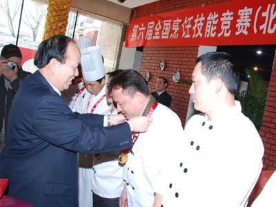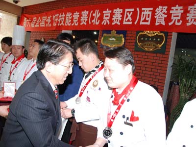 中国烹饪协会边疆副秘书长给银牌获得者颁奖