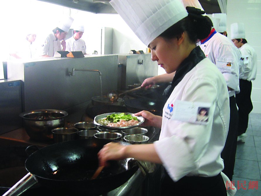 “今天的考试有点难,但是我会努力做的。”腼腆地笑着说完,崔泰真就开始忙碌起来,她把切好的肉丝、鸡丁等备好,然后开始上浆,觉得差不多了,就到炉灶边开火准备。崔泰真表示,中国菜的油比较多,煎炒烹炸等技法很多,开始学的时候有些困难,现在已经毕竟能拿捏有度了。记者看到,和崔泰真一批考试的八九位韩国留学生都在认真地忙碌着,虽然从样貌上一眼就能分辨出不是本地人,但是锅里传来的香味却是一样的吸引人。