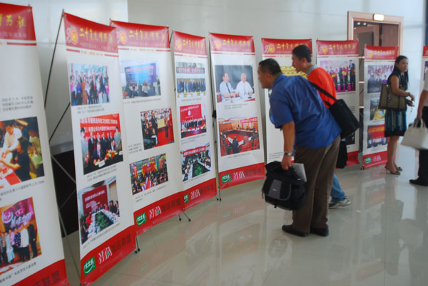 中国餐饮业发展进步展由40余块宽约1米、高约2米的移动展板组成,宣传的内容包括“领导关怀”、“协会介绍”、“发展历程”以及“活动业绩”等系列。展览以大幅照片为主,简短文字说明为辅,形象直观的反映了改革开放20余年来中国餐饮业和中国烹饪协会成长壮大的历史和不断改革发展的成绩,介绍了协会积极主动服务餐饮界、引领餐饮业健康发展、不断创新自身业务的辉煌业绩。展览的文字言简意赅,说明贴切,图片版式设计新颖大方,视觉效果逼人,不仅活跃了活动现场的气氛,而且吸引了不少人驻足观看。移动展览使参加厨师节的各地来宾快速了解了中国餐饮业改革发展历程,同时有效宣传了中国烹协服务社会、服务政府、服务餐饮企业担负的社会责任和引领行业发展进步的社团组织作用。