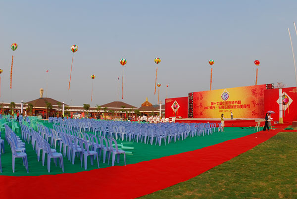 第十七届中国厨师节开幕前一天,主会场青秀山东南亚国际美食城呈现一派紧张而有序的气氛,各个项目基本准备就序。经过几个月的认真筹备,南宁将把一个充满地方民族特色的厨师节奉献给海内外来宾。