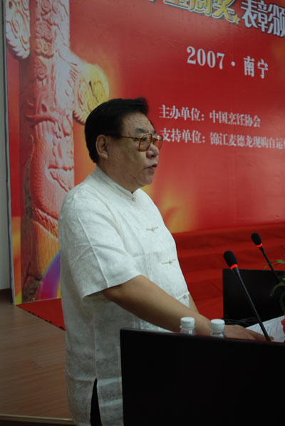 多年来,中华金厨奖获得者们辛勤劳动在第一线,你们脚踏实地、任劳任怨、埋头苦干、奋发好学,不断地充实自己、提高自己的理论水平、技术水平,用科学发展观来指导工作和实践,取得了优异的成绩。烹饪技术创新有了新的突破和重大进步,企业管理过程中创新了自有特色的管理模式,厨房运营更加具有效率,自我创新和发明的餐用具、成本核算概念在厨师人员中的贯彻落实不仅使餐饮成本控制更有成效,深刻领会和实践了中国烹饪协会提出的创建节约型餐饮产业的理念;在菜品制作上,各地厨师们结合当地实际,充分利用已有的资源天赋,既带动了果蔬产业的发展,为农民增了收,也提高了企业的经济和社会效益;在营销方式和方法上,你们不断推陈出新,手法新颖,歌舞与音乐伴奏的结合、消费者与企业的互动式就餐、传统文化和地方民族风情的结合等营销手段,为消费者展现了耳目一新的消费感觉和用餐体验;在服务规范化上,中国烹饪大师们发挥了很好的作用,积极探索,制订和更新了适合现代餐饮企业管理所需的服务标准化程序和规章制度,在解决企业因员工流动引起的服务质量不稳定问题上,提供了可供行业借鉴的新经验;你们中还有许多默默无闻的致力于为行业进步与发展做出深入思索并取得优异成绩的获奖者,他们在厨师队伍培养、烹饪理论与技艺研究的创新、行业技术与管理人才的培养等等方面,有的出版专著、有的发表多篇论文、有的奋战在教学第一线、有的专注于实验中,他们用自己的方式为行业做出了特有的贡献,谢谢你们。