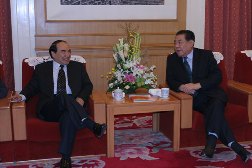 阿不来提主席与苏秋成会长亲切交谈,了解厨师节的活动情况