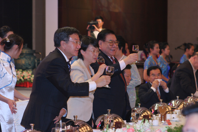 出席的晚宴的领导举杯庆祝第十九届中国厨师节开幕