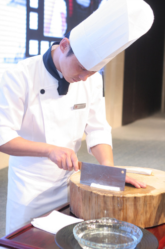 扬州迎宾馆的李文君师傅现场制作文思豆腐展示精湛刀工