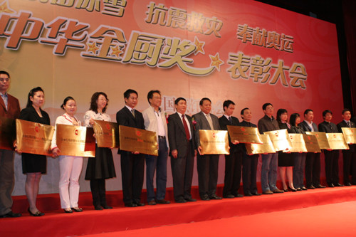 在颁奖仪式上,特意为参与抗击冰冻雨雪灾害和抗震救灾以及服务奥运并表现突出的145家企业颁发了中华金厨奖团体奖,另有223人荣获了中华金厨奖个人奖,其中有在抗击冰雪灾害和抗震救灾及奥运各项工作中表现突出,事迹感人,受到当地政府或行业组织表彰的个人;有在烹饪技术创新方面取得创新突破和重大成绩,得到专家同行认可或在国内、国际烹饪技能竞赛中获得杰出成绩,并在业内具有较大影响的技术能手;也有在企业管理、厨房运行、成本控制、人才培育、菜品质量、服务规范、企业文化等方面取得突出成果并成绩显著,获得过全国或省级行业表彰和认定的优秀企业管理者;还有为社会公益事业、再就业工程、环境保护等方面做出过突出的贡献,在业内具有良好的声誉和影响,得到了政府或行业组织的肯定或表彰的企业经营者,和在职业教育领域成绩突出,在烹饪理论和烹饪技艺研究方面有创新建树,在烹饪技术教育和行业培训方面有显著贡献,出版了有影响的餐饮著作或发表了专业文章的人才培育者。