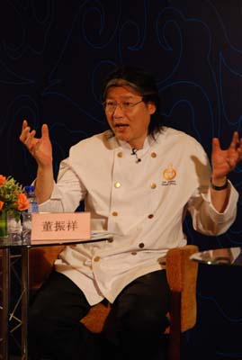 5月23、24日,北京大董烤鸭店总经理董振祥面对全国各地的150余位企业家和总厨,就本企业“董氏烧海参”和“红花汁鱼翅”两大“看家菜”进行理念、技法、出品全部细节大揭底,令在场同行无不鼓掌叫绝。