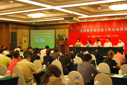 在启动仪式上,共青团中央有关领导和国资委机关团委的领导对这次活动给予了充分的肯定,希望在中国烹饪协会的带领下,在各试点单位的积极参与下,全国餐饮业的“团建”试点工作一定能够完成试点方案提出的各项任务,实现预定的各项目标,总结出适合餐饮行业长期发展的工作机制。眉州东坡、陶然居、俏江南等企业“团建”骨干代表作了主题演讲,介绍了各自企业的“团建”工作经验,同时来自湘鄂情的代表也表达了支持这项活动的决心,他们郑重承诺,积极响应餐饮行业团建号召,执行团建工作决议,履行团建工作义务;以团建工作为契机,深入贯彻落实科学发展观,最大限度地焕发积极性、主动性和创造性,最大限度地迸发建设热情和创造活力,不断加强和完善本单位团组织基础建设工作,为行业培养更多的青年骨干人才;积极贯彻“以育人为主题、以创新为动力、以团干为核心、以团建为阵地、以活动为纽带”的团建工作思路,带动企业广大青年向团组织靠拢,扩大团员队伍;勇做团建工作开拓者,进一步增强做好共青团工作的责任感、使命感和紧迫感,牢牢把握机遇,找准工作的切入点,带动地方餐饮团建工作,促进团员青年全面发展,形成积极向上、朝气蓬勃的有生力量。用我们火红的青春,服务行业,奉献社会,确保完成团建试点的各项任务。