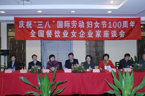 3月5日,为庆祝三八国际劳动妇女节100周年,中国烹饪协会组织了慰问餐饮业女职工和全国餐饮业女企业家座谈活动。