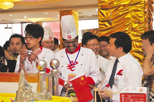 烧制正宗的“盱眙龙虾”并不是一件容易的事情,火候拿捏、调料配比……增之一分则太浓,减之一分则无味,可现场外国选手的娴熟程度及烹饪创意还是赢得了一阵阵的掌声,显然他们是有备而来的。记者在比赛现场看到,一组蓝眼睛、高鼻梁、黝黑的皮肤的参赛选手们手握一把生花的妙勺,正在烧制自己独特的龙虾美食,个个忙得不亦乐乎,角逐龙虾烹饪金牌。“哇,芒果和椰浆也可以用来烧龙虾啊?”只见一位白发苍苍的老者,她叫Tim,今年56岁,英国人。她在本次大赛中的作品“芒果椰浆龙虾”,深受评委的好评。      来自印度身怀绝技的4号选手杰,他娴熟地对自己的“咖喱龙虾”进行装饰。“正宗地道的盱眙龙虾太好吃了,今天我将它‘西化’,与盱眙的龙虾烹饪大师PK,”杰满怀自信地告诉记者,“希望盱眙龙虾节越办越大,明年我还会来参加比赛。”一道名为“龙腾四海”的龙虾美食,令人垂涎欲滴,它是来自欧洲马耳他的5号选手的参赛作品。“盱眙龙虾已经漂洋过海,走遍世界,祝盱眙龙虾节举办成功。”他用不太流利的汉语对龙虾节给予祝福。