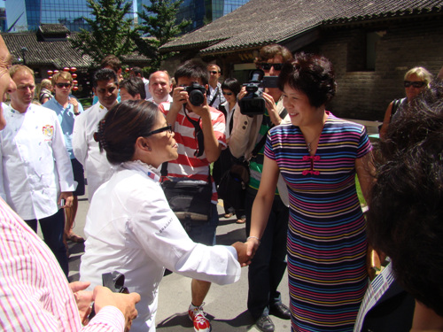 杨柳常务副会长同美国总统奥巴马的御用厨师Cristeta COMERFORD女士握手,表示欢迎
