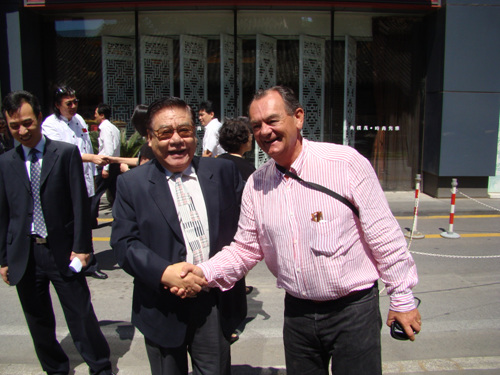 苏秋成会长同世界名厨协会的秘书长Gilles BRAGARD先生握手
