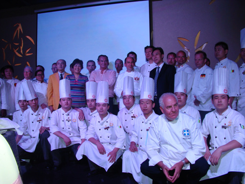 8月22日,中国烹饪协会苏秋成会长、杨柳常务副会长和高炳义副会长率领中国各地名厨40余人,在北京大董烤鸭店南新仓店举行欢迎午宴,欢迎世界名厨协会第33届年会的代表。