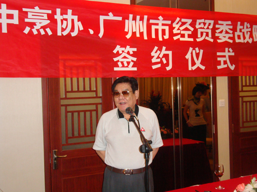 为了全力支持广州举办第十六届亚洲运动会,促进餐饮业发展,提升广州地区餐饮服务水平,培育粤菜引领发展的强势品牌,弘扬中华粤菜饮食文化,打造广州世界美食集结地,8月28日,中国烹饪协会与广州市经贸委签署战略合作协议,建立长期战略合作关系。中国烹饪协会苏秋成会长、杨柳常务副会长与广州市经贸委赵小穗主任、郭伟光、陈勇副主任、谭海莹副巡视员,越秀区副区长卞勇和荔湾区副区长蓝小环,广州饮食商会会长区又生、饮食协会会长秦鉴洪等共同出席了签约仪式。杨柳常务副会长与赵小穗主任分别代表双方签署了战略合作协议。
