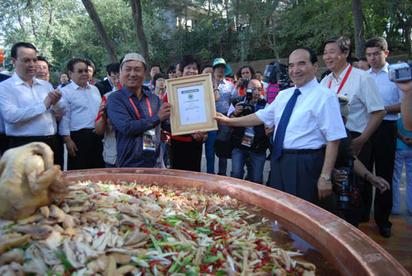 全国政协副主席阿不来提·阿不都热西提为“第一椒麻鸡”颁发基尼斯证书