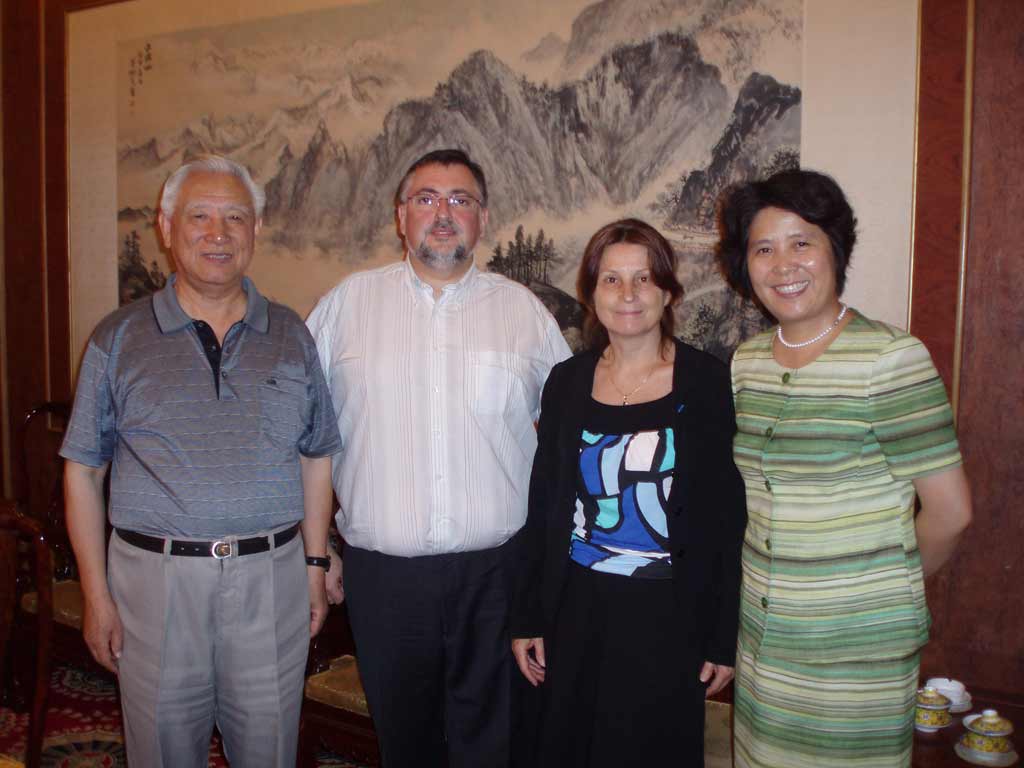张世尧名誉会长(左一)杨柳常务副会长(右一)与布鲁诺先生(左二)玛丽女士(右二)合影留念