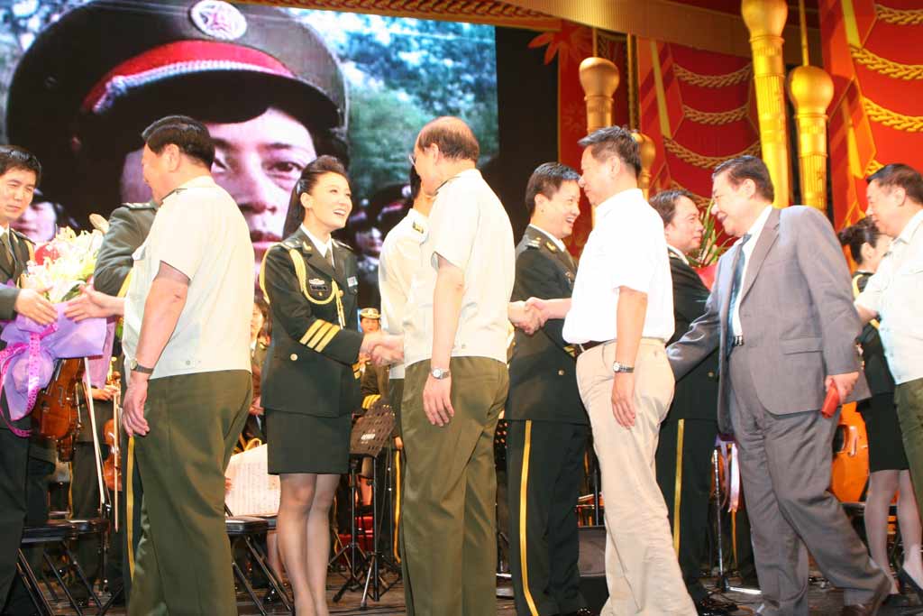 中国烹饪协会苏秋成会长与音乐会演员亲切握手总后军需物资油料部-新军容新风貌新使命专题音乐会场景