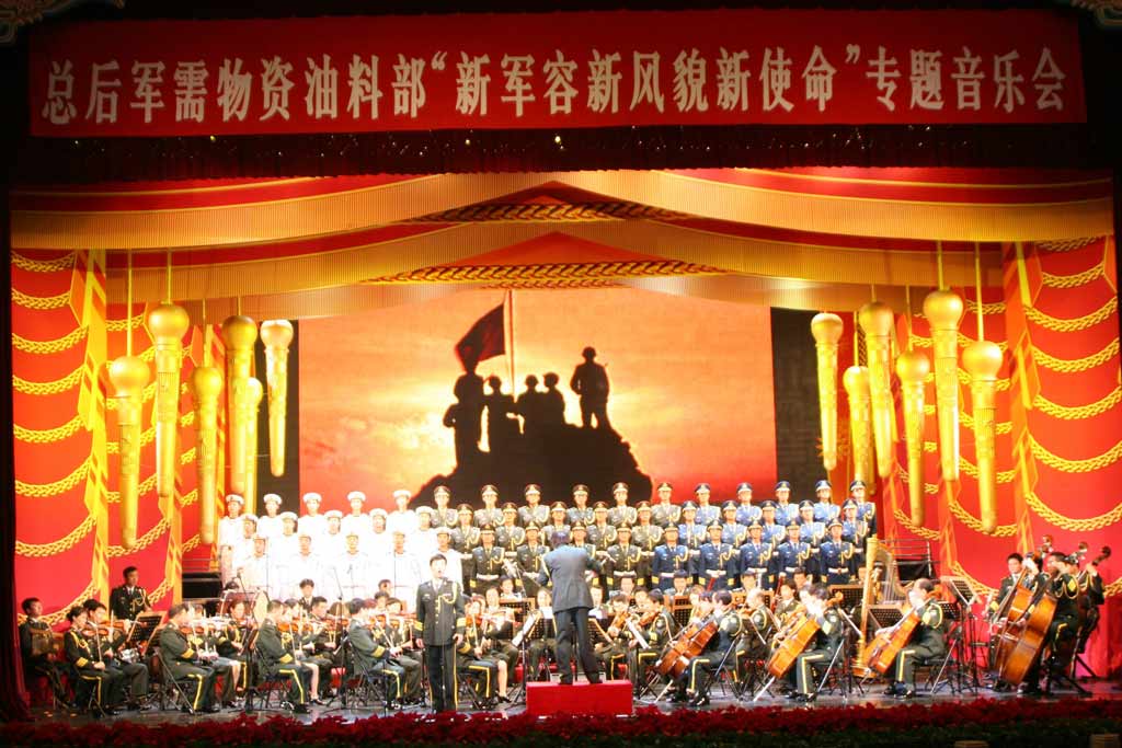 7月19日,为庆祝中国人民解放军建军80周年,庆贺全军部队从今年起陆续换发新式服装,由总后军需物资油料部主办、北京军区战友文工团演出的“新军容新风貌新使命”专题音乐会在北京解放军总后勤部礼堂举行。下午3点,专题音乐会正式开演,中国烹饪协会会长苏秋成与副秘书长边疆作为特邀嘉宾出席了音乐会。全场音乐会以《中国人民解放军军歌》为序共演奏了20首在不同时期创作的军歌,新换发的07式军服展现出新时代中国人民解放军官兵的飒爽英姿。