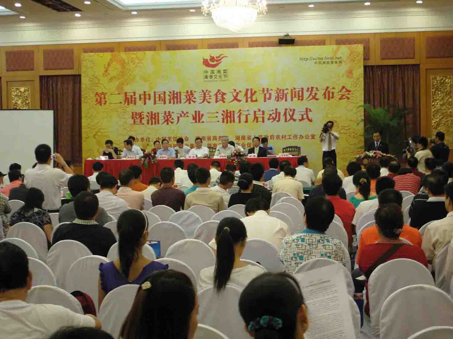 8月9日,第二届中国湘菜美食文化节在长沙市华天大酒店隆重启幕。来自北京、广州、上海和湖南本地的湘菜行业、组织代表二百多人出席了开幕式。湖南省政协主席胡彪、省人大常委会副主任庞道沐、省政协副主席李贻衡等领导出席了开幕式。中国烹饪协会副秘书长边疆代表协会出席启动发布会并致辞。