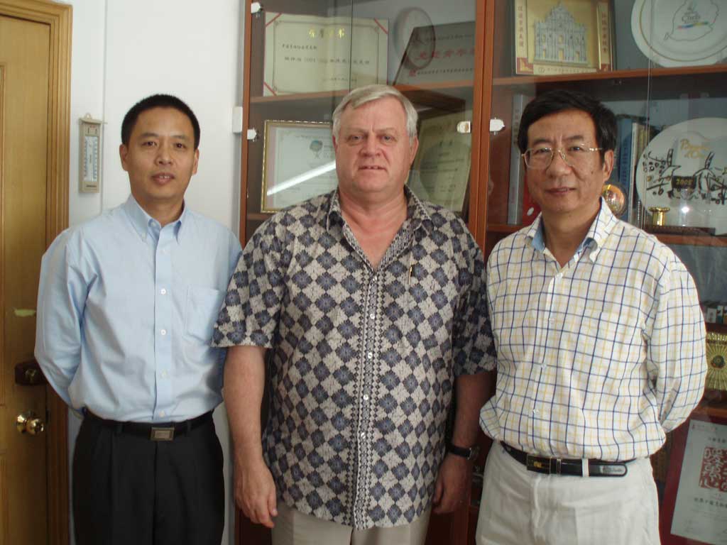 图二冯恩援秘书长(右)与帕尔玛(中)郑宣(左)