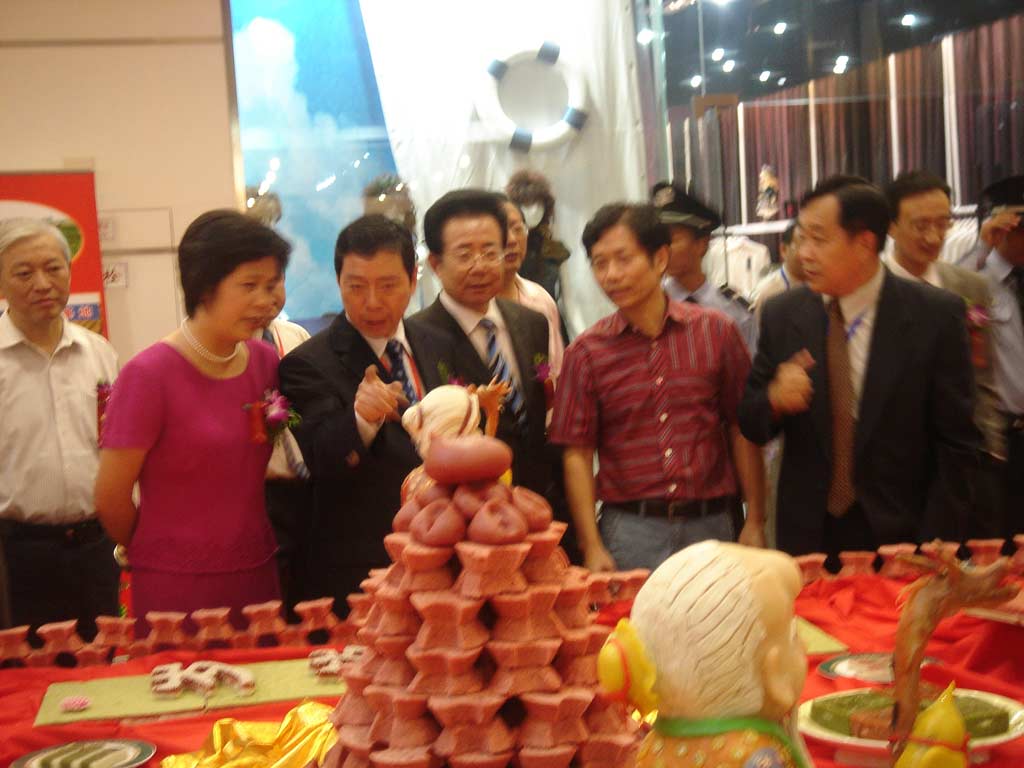 图4: 中烹协领导与江苏省、苏州市领导仔细观摩展台作品