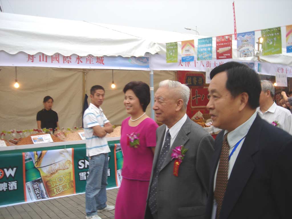 图5:世烹联会长张世尧、中烹协常务副会长杨柳与苏州市烹协会长华永根观摩中华风味小吃展