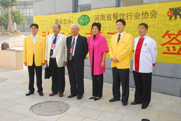 图1、张世尧名誉会长、杨柳常务副会长出席“弘扬豫菜万人签名活动”