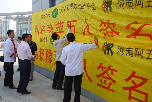 据活动的策划者,中国烹饪大师、河南阿五美食有限公司董事长樊胜武介绍,振兴豫菜万人签名活动将在第十七届中国厨师节组委会和南宁同行的协调支持下,在本次厨师节主要活动现场张挂,以获得更多同行的支持。