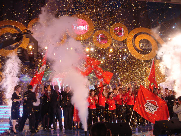 11月7日,苏秋成会长出席了百胜餐饮集团中国事业部餐厅经理年会。百胜餐饮集团旗下的肯德基、必胜客、宅急送等品牌的三千余名餐厅经理从全国各地相聚到天府之国成都,共庆中国肯德基20周年取得的骄人业绩。历时半年的全国肯德基冠军挑战赛举行了总决赛。庆典大会流光溢彩、笑语欢腾、洋溢出一派欢乐、喜庆、祥和的景象。