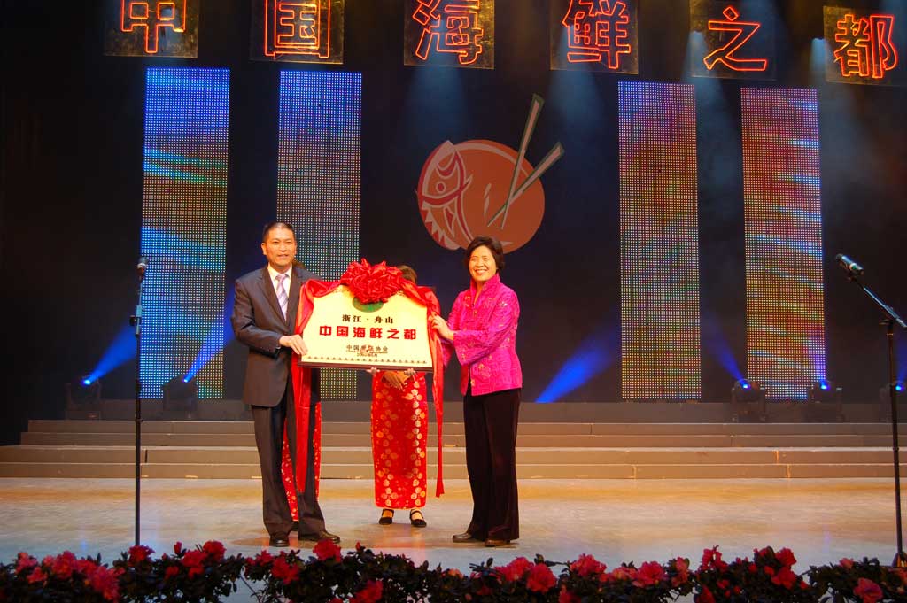 闭幕式上,中国烹饪协会常务副会长杨柳女士向舟山市授予了“中国海鲜之都”牌匾。这张新的旅游名片,将大大提升舟山海鲜的知名度。今后舟山也将围绕“中国海鲜之都”这一品牌,继续提高舟山海鲜菜肴的影响力,做强海鲜美食产业,从而进一步推动舟山旅游业的发展。