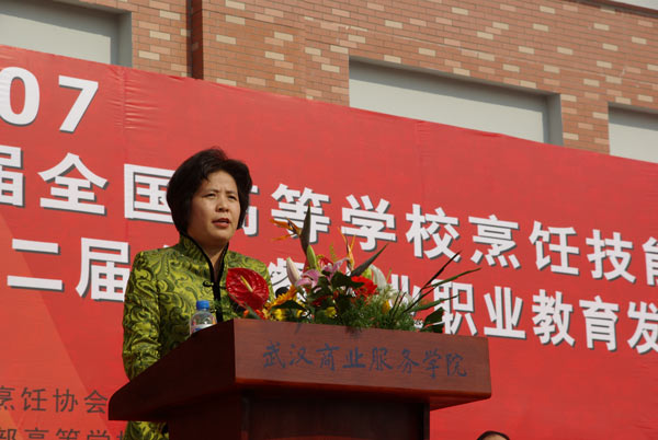 在党的十七大胜利闭幕的喜庆时刻,在我国餐饮业保持持续发展与繁荣的战略机遇期,我们在江城武汉隆重举行首届全国高等学校烹饪技能大赛暨第二届全国餐饮业职业教育发展论坛。在这里我谨代表组委会向参加比赛和出席论坛的各位领导、各位专家以及来自国内餐饮烹饪院校的老师们、同学们表示热烈的欢迎!向为比赛和论坛成功举办付出汗水、提供支持的单位和个人表示最诚挚的敬意和由衷的感谢!