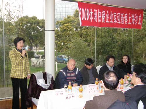 杨柳常务副会长就餐饮业的发展趋势和奥运商机把握等话题与企业家们进行了交流,肯定了休闲餐饮和快餐产业蕴含的巨大潜力。表示休闲快餐既蕴涵着深厚的文化内涵又散发着清新的时代气息,以其独特地魅力影响着中国餐饮市场格局。休闲餐饮的迅猛发展也对中国餐饮业向品牌化、连锁化、多样化、现代化、国际化和规范化的方向发展起到了积极的促进作用。