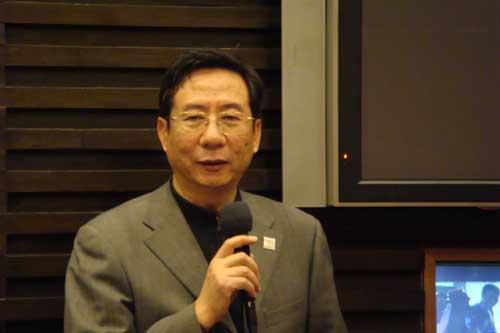 图4、冯恩援秘书长向新闻媒体朋友介绍协会08年主要工作