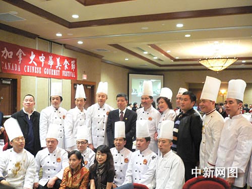 中国驻温哥华总领事杨强(后排左五)与中国烹饪大师合影。