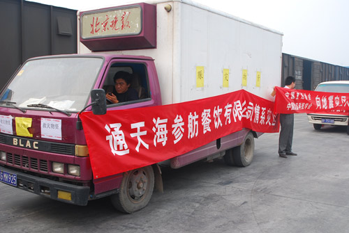 在运送物资的现场,北京通天海参舫公司总经理、中国烹饪大师王晓东用非常简单质朴的语言表达了自己的心情,“都是中国人,现在能做些什么就立即做些什么!”