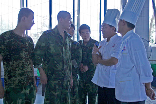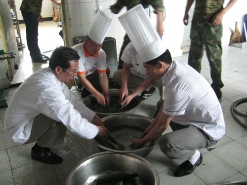 对于中国烹饪协会抗震救援队远赴灾区的义举,部队领导给予了高度的评价,表示感谢和欢迎。根据原料情况,救援队当晚烹制的菜品有宫保肉丁、炝炒元白菜、香菇苦瓜等。烹制过程中,救援队还与部队炊事兵进行了技艺交流。