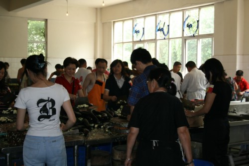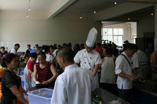 31日,中国烹协厨师抗震救援队进入位于新都的“成都餐饮业爱心食堂”,参加为灾民烹制饭菜的工作。