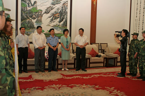 救援队领队冯恩援秘书长也向领导和媒体简要介绍了救援队的工作情况,并向大家介绍了救援队中发挥骨干作用的党员代表。随后,中央电视台、中央人民广播电台、中国经济周刊、京华时报等媒体记者还现场采访了到场的领导和救援队部分成员。