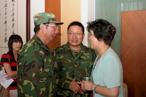 图6、空军后勤部军需物资油料部刘秀军部长感谢抗震救援队