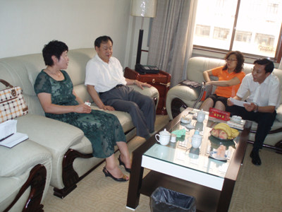 图一:甘肃灾区商业系统有关领导向考察组汇报灾情
