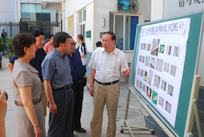 6月27日,考察组鉴于余震危险、交通封路,取消了重灾区陇南市考察的计划,前往与陇南市相邻的天水市。天水市秦州区商业局长辛旭中、天水市商业联合会副会长、天水商厦股份有限公司董事长杨丽霞等向考察组汇报了当地受灾情况,并陪同考察组到两所受灾倒塌的中小学现场考察,天水市秦州区教育局局长罗永安在现场介绍了该区教育系统受灾情况。