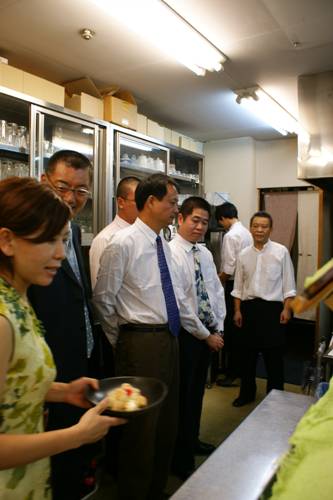 应学习学员的邀请,代表团在晚宴结束后来到上海.龙餐厅考察,与该餐厅的厨师进行交流,并提出指导意见。