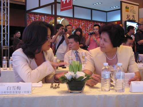 图1、杨会长与联合利华饮食策划中国区副总裁白雪梅亲切交谈