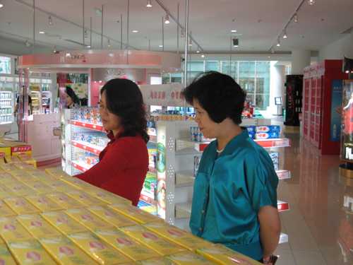 图7、白雪梅副总裁向杨会长介绍联合利华产品