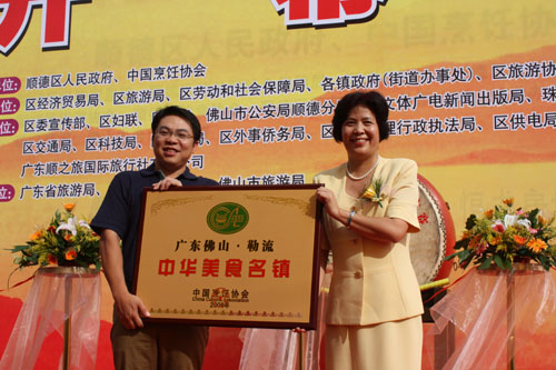 开幕式上,还举行了勒流的“中华美食名镇”授牌仪式。根据勒流的申请,中国烹饪协会前不久专门派出专家认定组赴勒流实地考察认证,在综合各方意见的基础上,中国烹饪协会决定授予勒流“中华美食名镇”称号,这是继大良荣获“中华餐饮名镇”之后的又一个获得殊荣的地区。