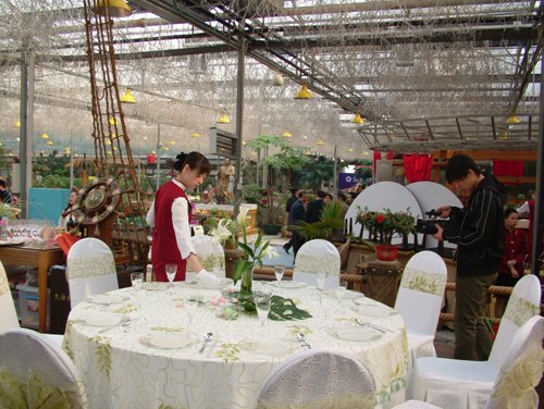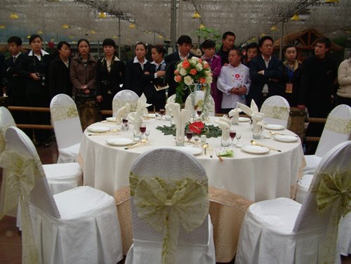 2.台面美化造型丰富。台面美化造型采用花卉、雕塑、菜点、镶图等多种造型方法来突出主题,渲染气氛。