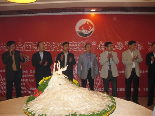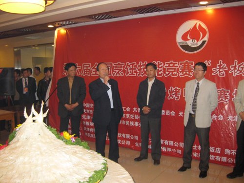4月12日上午,第六届全国烹饪大赛“老板娘”杯天津赛区的比赛在天津烤鸭店举行了简短而又隆重的开幕仪式。