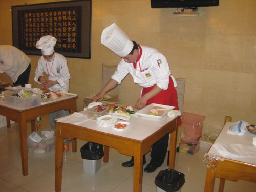 今天上午进行了热菜、面点和食雕的比赛。在比赛现场,选手们拿出来看家本领,经过一番精心烹制,一道道色香味俱全如同工艺品的美食作品展现在评委面前。接下来的两天时间里,西餐、清真、服务的比赛序幕将陆续拉开。